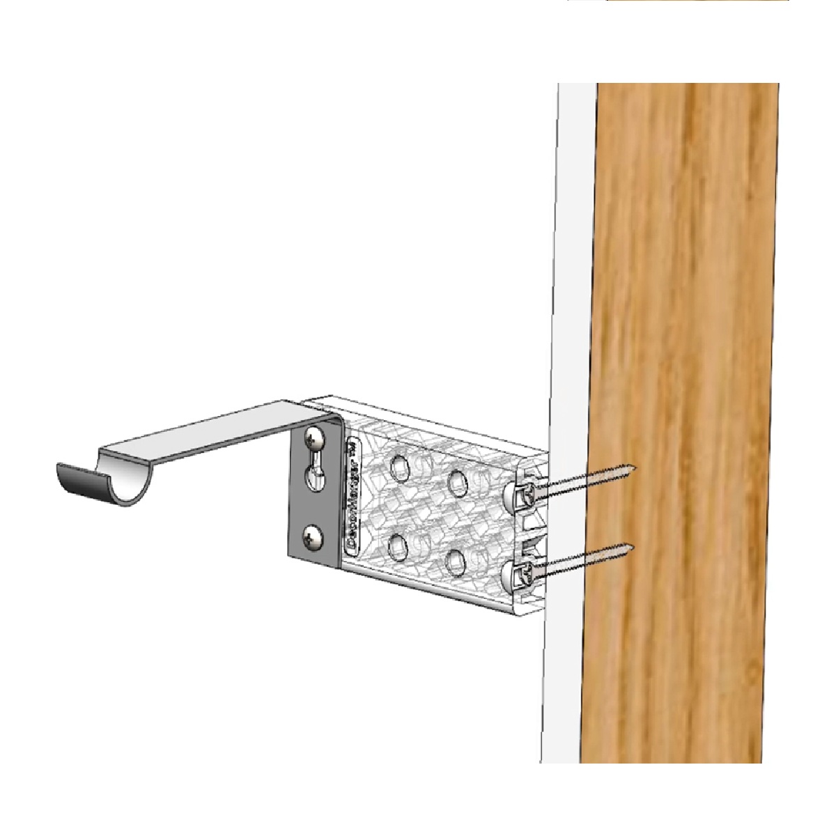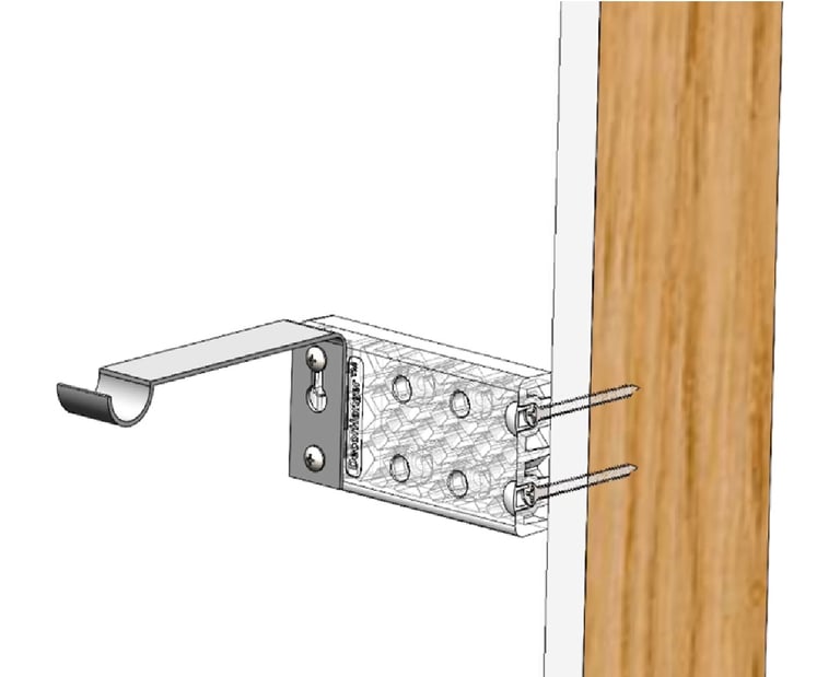 Creates a strong mounting point for your curtain rod bracket, off to the side of the window, with NO DRYWALL ANCHORS.