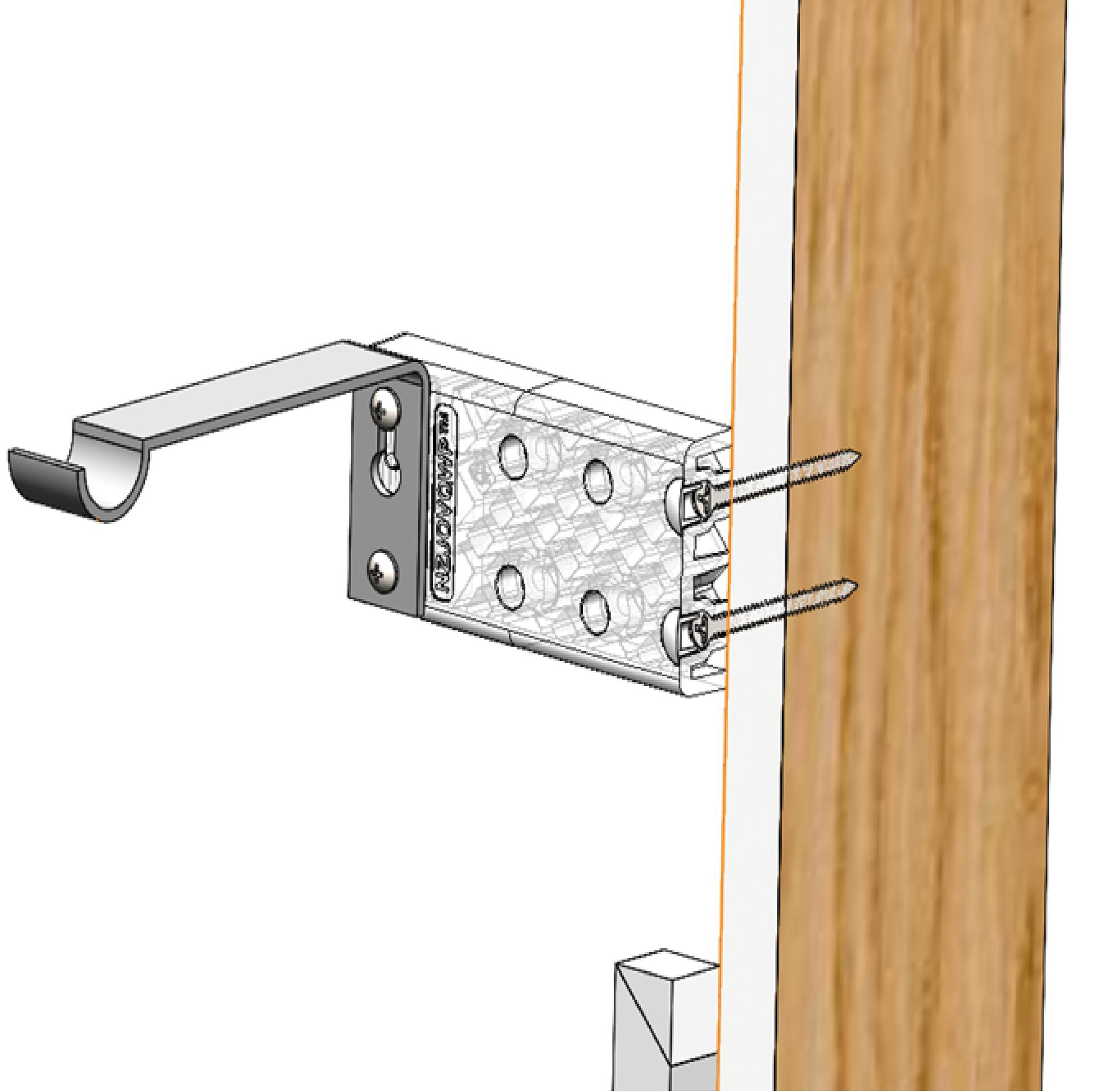 Using the supplied screws and square nuts, attach your curtain rod bracket to the NZJOVQWP Bracket.