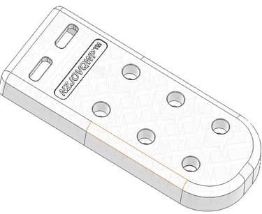 The NZJOVQWP bracket is thick and strong - 5 inches long by 2 inches wide by over 1/2 inch thick. Actual dimensions are 5" x 2" x 5/8".